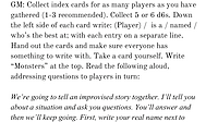 There was a stray "but" in the list of things to write on character cards from when I originally thought I would include a PC foible in the game. It wasn't necessary and now has been removed...